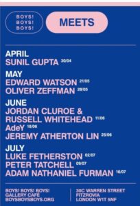 BOYS! BOYS! BOYS! goes to NY + has a EXHIBIT in London+ Painting School in South of France